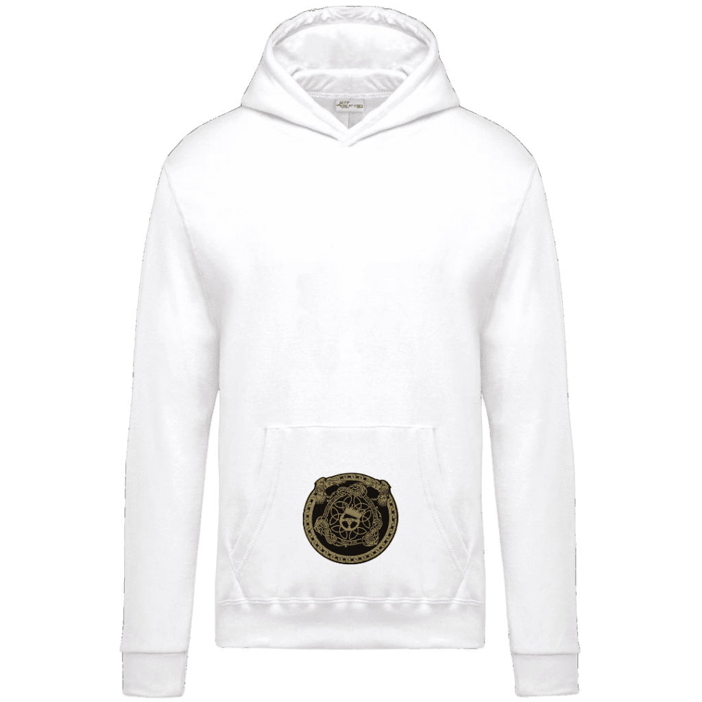 80% coton / 20% polyester. Molleton gratté. Manches montées. Capuche doublée. Poches Kangourou. Finition bord-côte bas de manches et de vêtement. Blason tissé.